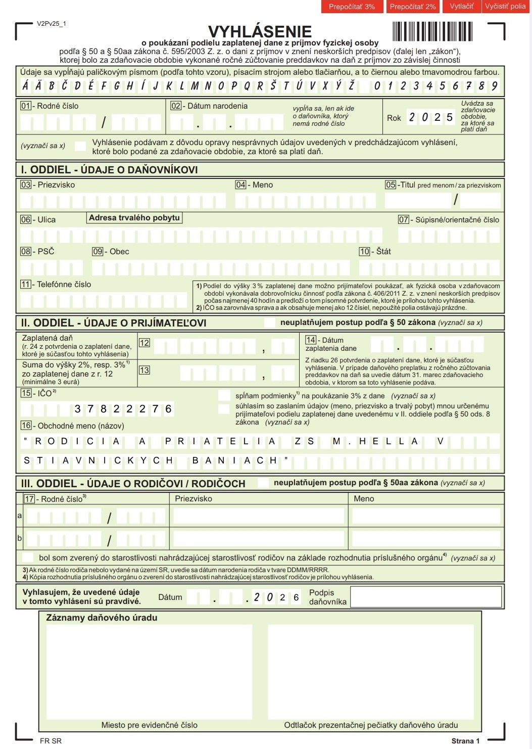 2 percentá za rok 2024